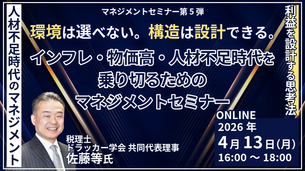 <紹介>【佐藤等氏登壇】インフレ・物価高・人材不足時代を乗り切るためのマネジメントセミナー〈第5弾〉