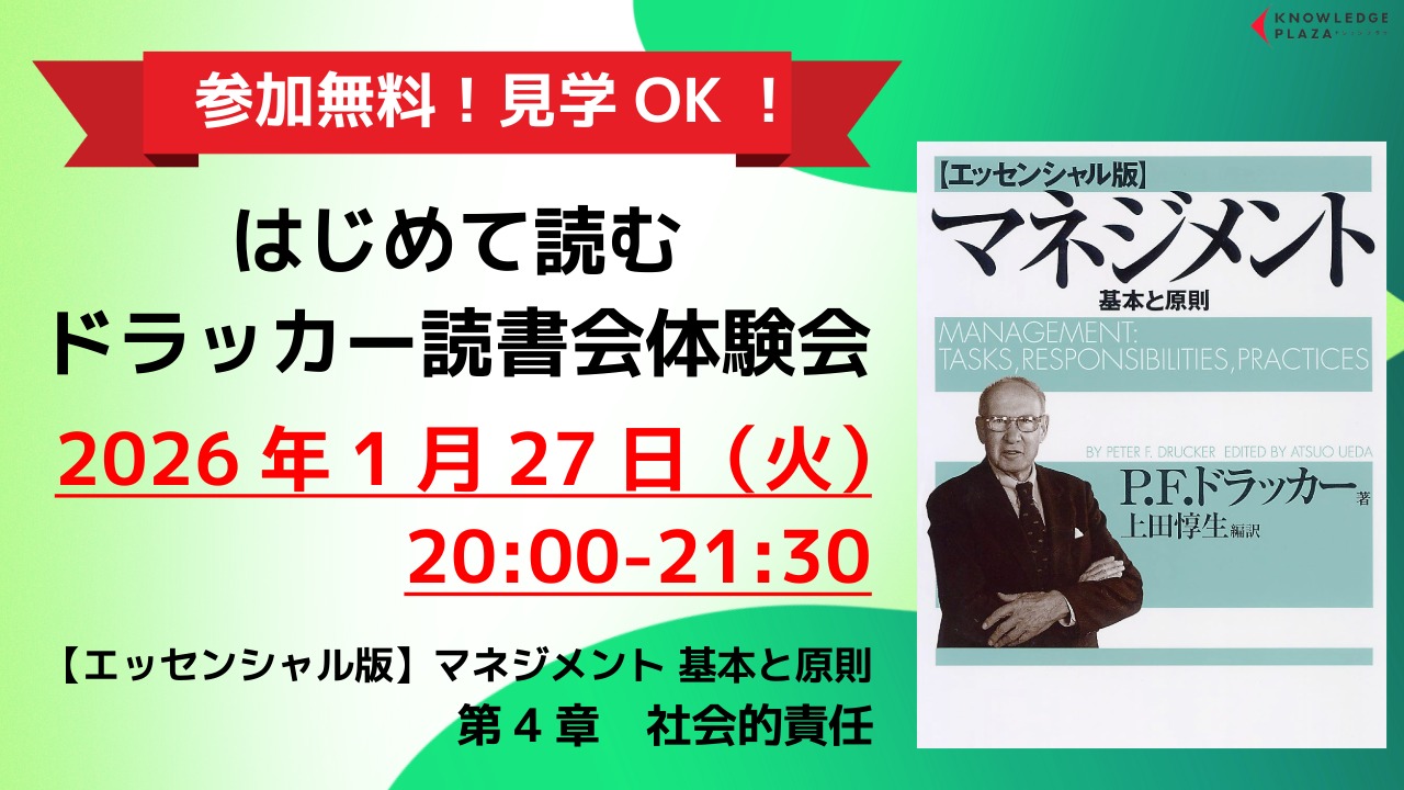 ナレッジプラザは、マネジメントを学ぶための講座、新たな出会いがイノベーションを生むセミナー、ドラッカーを学ぶ読書会を開催しています。